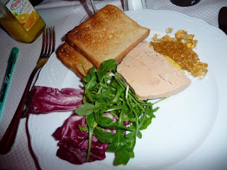三個courses 既套餐要22歐羅,因為頭盤無得揀田螺,所以散叫左一個share, 頭盤我同ceci都揀左鴨肝醬多士沙律,好香好好味,食都最後一啖都仲好好食,法國田螺都幾好,不過無驚喜.